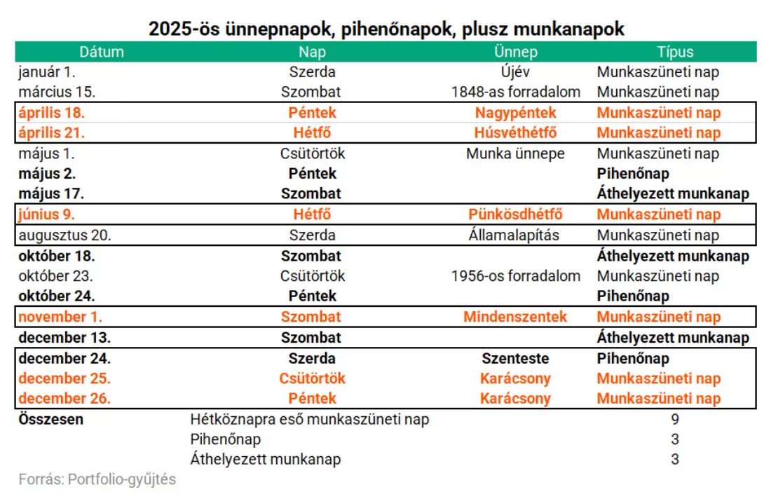 A 2025. évi munkaszüneti napok körüli munkarend: