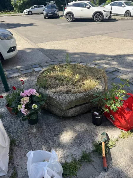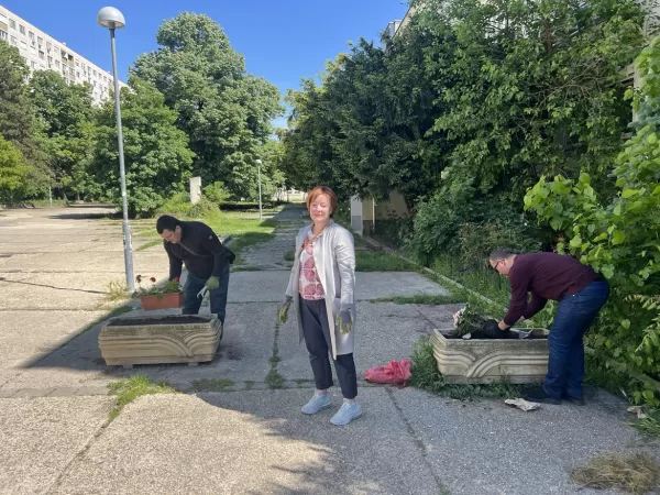 Szombaton délelőtt a Harrer Pál utcában szépítették a környezetet az Óbudai Tiszások. Az elhanyagolt, gyomokkal teli kővázákat kitisztították és gyönyörű virágokat ültettek bele.