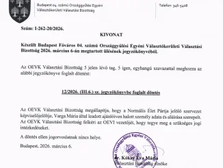 Szokatlan ügy került a Budapest 04. számú Országgyűlési Egyéni Választókerületi Választási Bizottság elé. A testület 2026. március 6-i ülésén megállapította, hogy a Normális Élet Pártja jelölő szervezet képviselőjelöltje, Varga Mária által leadott egyik ajánlóíven elhunyt (tovább)